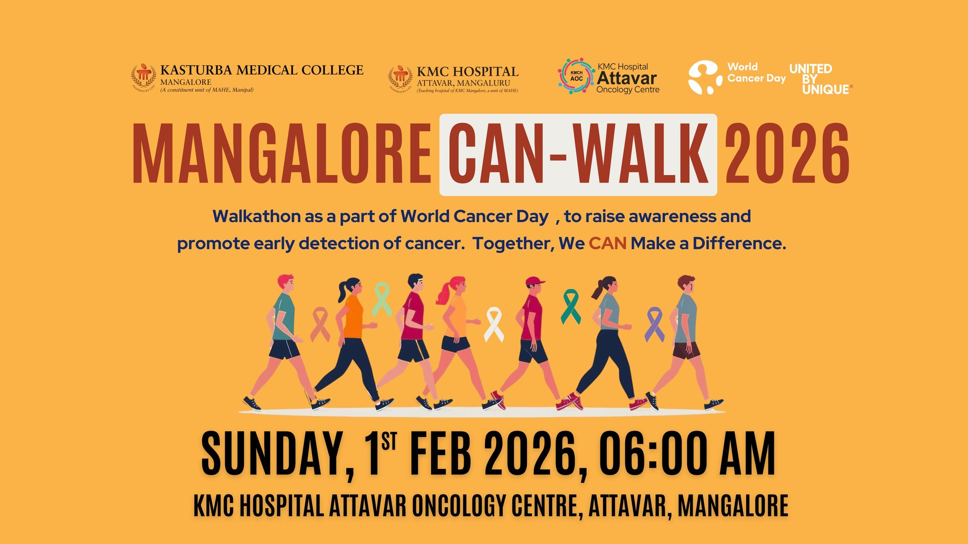 Organized by KMC Hospital Attavar Oncology Centre as a part of World Cancer Day 2026 activites, Mangalore Can-Walk is a community movement dedicated to raising awareness, support, and compassion for individuals and families affected by cancer. It brings together survivors, caregivers, doctors, nurses, students, volunteers, and citizens of all ages — reminding us that the fight against cancer is not an individual journey, but a collective one.